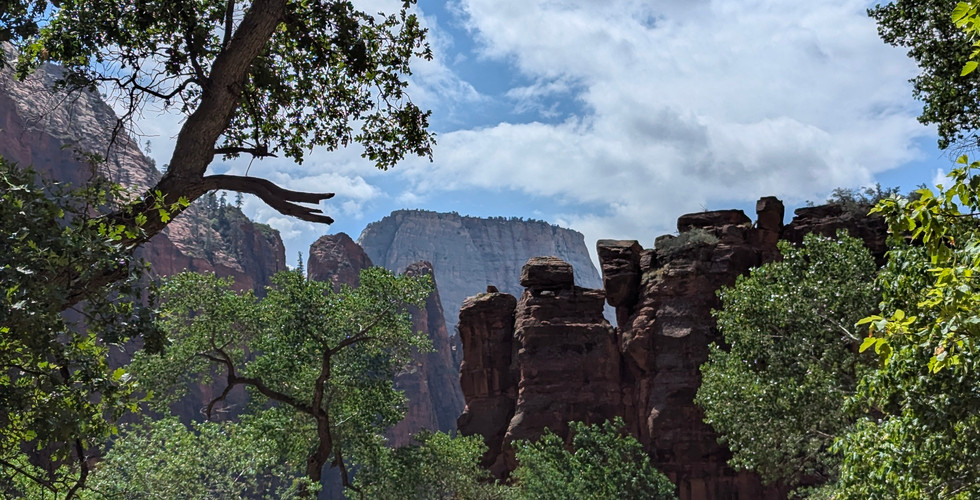 I woke up, put away everything but the tent itself, and headed into Zion for another day of hiking, whatever trail it ended up being. I'd hoped I could do the Narrows, but as it rained while heading into the park, my hopes for that quickly died. I wanted to at least walk down to the start of it, and a ranger there said that was safe enough, so I did. I decided to throw my water shoes back on and walked up to part of the river. After going for a little bit, I decided to head back. I'd stop along the way to play on boulders or walk across fallen trees, which only brought back memories of doing similar things when I was a kid. It was fun. I wished I'd hung around and climbed on more. Next time. As I was walking out to the shuttled, a sign had been put up saying the Narrows were closed as rangers turned people away. I'm glad I got to see what I did, but I was disappointed I didn't get to do the Narrows. I told Jack I was going to start watching Southwest flights and the weather, and if I see a deal pop up in my inbox, I'd try and fly up for a weekend and try to do it again. Or I might have to wait until next summer, but not during the rainy season.